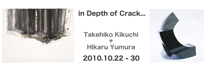 In the middle of severely heated August, I have received the e-mail from owner of DOKA Contemporary Arts, Chuichi Mogami. That e-mail said "I want to hold the exhibition titled "in Depth of Crack" with Takehiko Kikuchi and Hikaru Yumura." To tell the truth, it did not come tightly at that time. However, I consented to the title when I saw the pictures of both artist's work which I received later. Because the title leads me not only to external feature of works, but to the inner essence of aesthetics of both artists.
