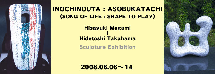 2008 | "Candescent Great Masters - Big Heat" at Takashimaya, Tokyo. Duo Exibition with Hidetoshi.Takahama "INOCHINOUTA : ASOBUKATACHI (SONG OF LIFE : SHAPE TO PLAY)" at DOKA Contemporary Arts, Tokyo. |
