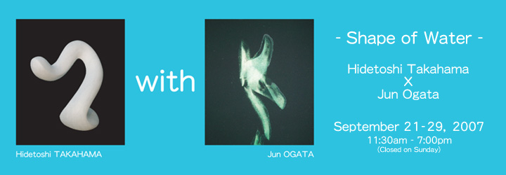 The collaborated exhibition of Hidetoshi.Takahama and Jun.Ogata attempts to realise us the quality of the world where we should return with the shape of the transformed of water. Also that would restore our memory of water and remind us that we were the water.