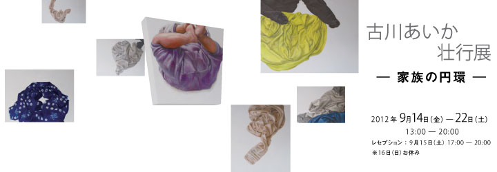 古川あいかの作品は、見るものを惹きつけ、永続する余韻を残す。 衣類や布などの日常のモチーフを捉えながらも、そのモチーフが大量に天空に吸い込まれるような作品、また同心円状に描かれたイメージ。 人々が毎日飽くことなく着替えることで入替る衣類、それらは古川の組み換え作業で、非日常の世界となり、さわやかな刺激を創出する。