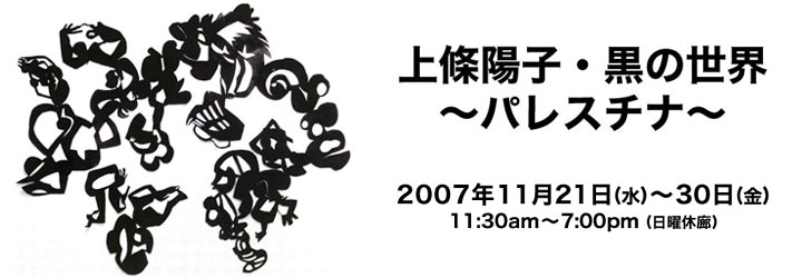 今回の国際作家・上條陽子氏は、広いスペースでの「インスタレーション」を中心に幅広いテーマを表現する作家ですが、個人コレクター向けの作品の入手機会が少なかったのも事実です。このたびの「DOKA」での個展では、個人収集家向けの黒い作品でまとめました。また、1948年以降、国際的にも政治・経済・社会の各界では、パレスチナの民族・宗教・難民問題:貧困と文化の問題が取り上げられています。・・・